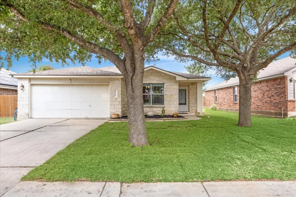 Welcome to 104 Lucky Clover Lane, a beautifully maintained, move in ready home in the heart of Hutto. This single story residence offers 3 oversized bedrooms, 2 full bathrooms, and a bright, open layout designed for everyday living. From the curb appeal that is anchored by two mature trees and fresh landscaping, to the tall ceilings, arch features and durable wood-look vinyl flooring (no carpet!), this home feels both polished and practical. The living area flows into a well appointed kitchen with Silestone countertops, under-cabinet lighting, stainless steel appliances, and a breakfast bar perfect for casual meals or entertaining. Just off the kitchen, a sliding barn door conceals the laundry and walk in pantry. The spacious primary suite includes large windows, an ensuite bath, and a generous walk-in closet. Two unusually large secondary bedrooms offer great storage, natural light, and ceiling fans in every room. Enjoy backyard privacy or entertain beneath the shady trees out front. Key upgrades include: Fresh interior paint throughout, crown moulding throughout, new ceiling fans, front and back doors (2025), new tile in bathrooms(2025), water heater (2023), roof and fence (2019), AC serviced (2025), and garage shelving. Located in a prime Hutto location near Hwy 79, SH 130, schools, restaurants, and the Co-Op District—without crossing major highways. A rare find in a fast-growing, connected community.