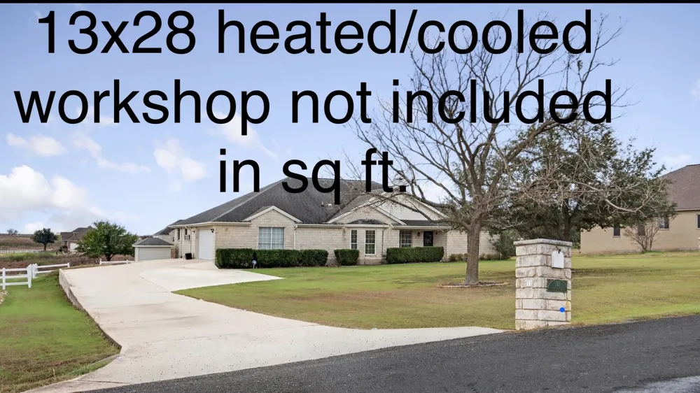 Discover the perfect opportunity to own a stunning ranch-style home nestled on a picturesque 1-acre lot in the highly sought-after Lookout at Brushy Creek minutes from the hustle and bustle of the city. This residence has been thoughtfully updated, showcasing wood look tile flooring throughout for durability. The heart of this home is the inviting kitchen, adorned with granite countertops, a stylish travertine backsplash, stainless steel appliances, and custom-painted cabinetry. The upgraded floor-to-ceiling fireplace, complete with an impressive custom mantle, adds an impressive touch to the home. Enjoy the convenience of gas cooking with an underground propane tank, making meal preparation a delight. The spacious primary bedroom accommodates oversized furniture with ease, while the generously sized guest bedrooms provide ample room for comfort. A charming nook offers a perfect spot for a desk, ideal for a cozy workspace. Step through the living room French doors to reveal a sprawling back patio that extends the length of the home, where you can savor breathtaking views of the serene countryside. For those in need of a man cave or extra space, you'll be captivated by the 18x23 workshop equipped with a window unit and heater, which could easily transform into a guest house or a functional workspace. The homeowner has also upgraded the electrical panel to include a 50-amp plug, perfect for connecting a generator or other equipment. This exceptional property boasts an unbeatable location, just minutes from TX-130, ensuring easy access to the airport, HEB, Costco, and a variety of shopping options. Additionally, the community features a large pond with covered picnic areas and a fishing pier, making it a perfect retreat for relaxation and recreation. Seize this opportunity to make this enchanting home yours!
